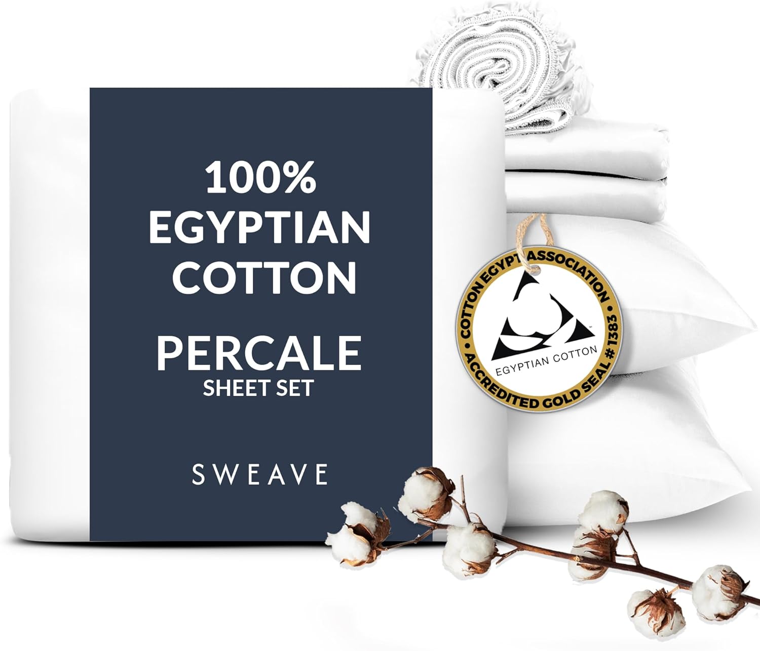 100% Egyptian Cotton Percale Sheets Queen Size - Genuine Luxurious 400 Thread Count - Naturally Crisp, Breathable, Skin-Friendly & Cooling - Softer After Each Wash - Oeko-TEX Certified Giza - - https://amzn.to/4cCv0jb
